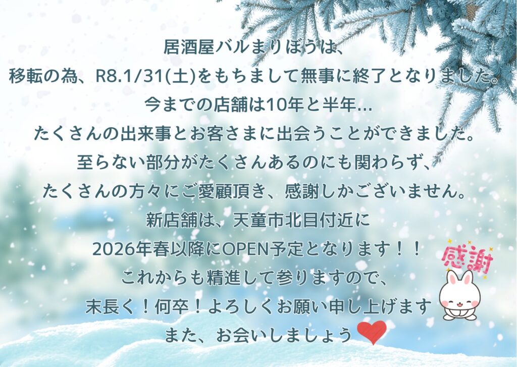 ※(金)(土)と祝前日の夜のテイクアウトは終了いたしました。